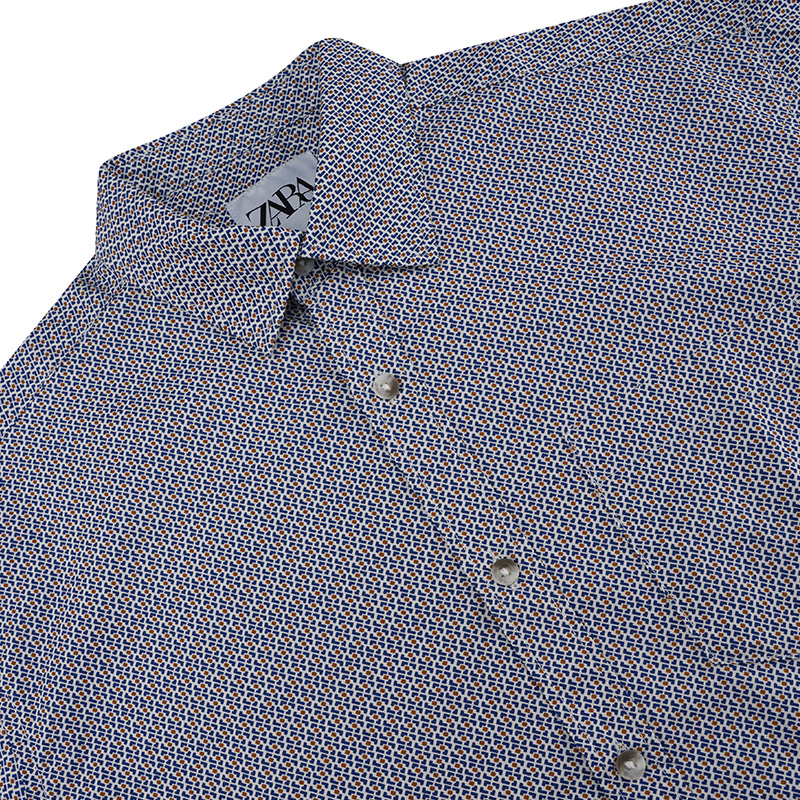 Half-Sleeve Blue Printed Cotton Hawaiian Shirt