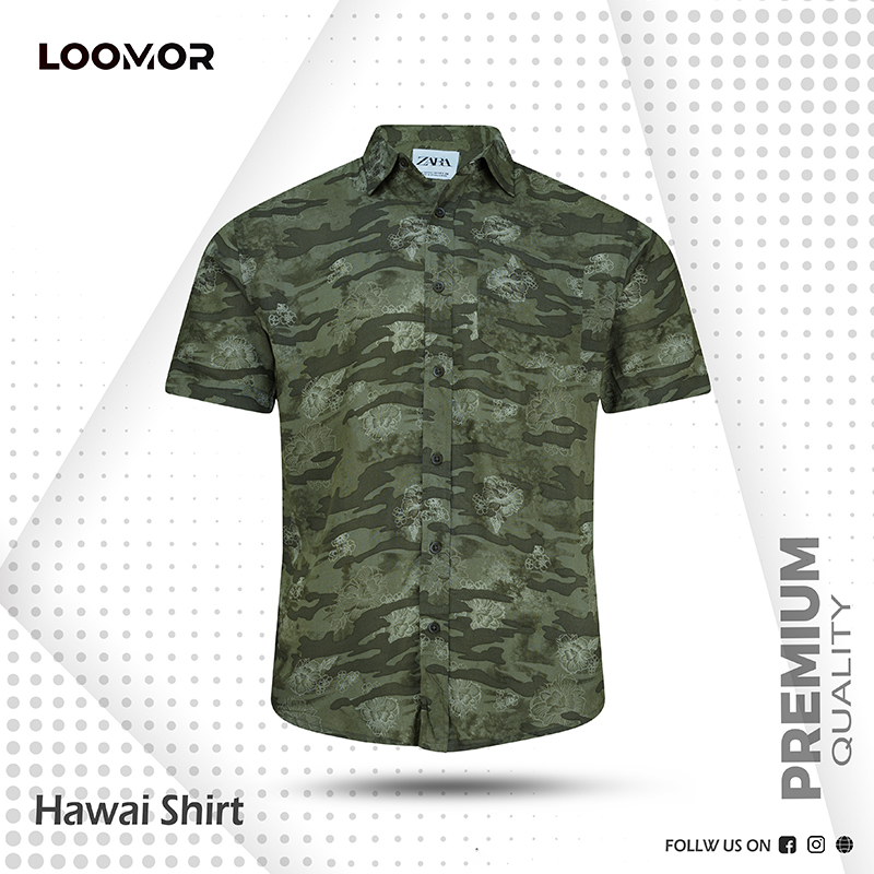 Half-Sleeve Green Camo Printed Hawaiian Shirt